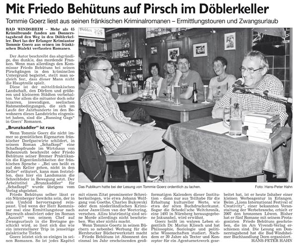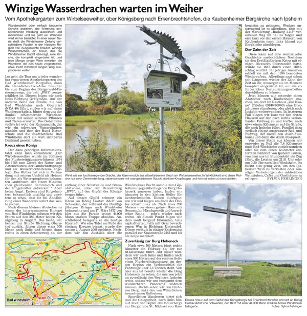 WZ 11. 10. 2014 "Offen, trocken, warm und bald auch grün", "Plaudern und spielen in geschützter Runde", "Winzige Wasserdrachen warten im Weiher", "Mit Friedo Behütuns auf Pirsch im Döblerkeller"