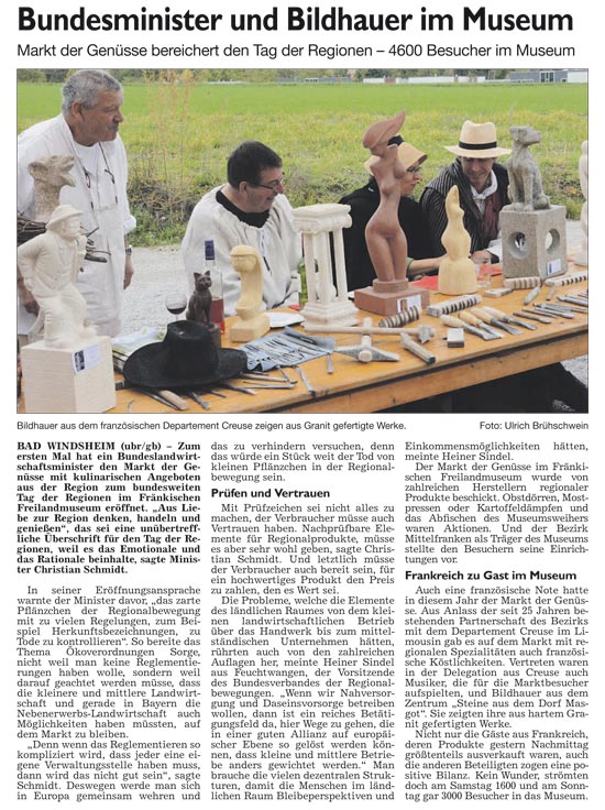 WZ 13. 10. 2014 "Voller Einsatz für die Wehr", "Wärmende Sonne zum Herbstmarkt", "Debatten um Bauen und Brechen", "Bundesminister und Bildhauer im Freilandmuseum"