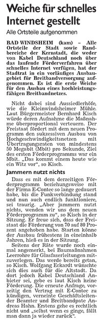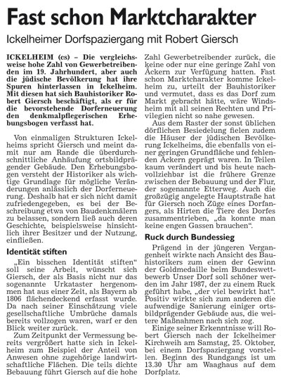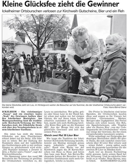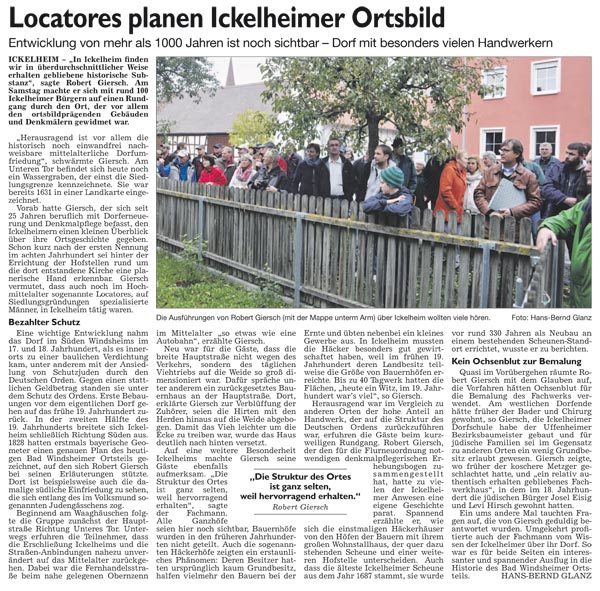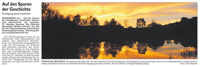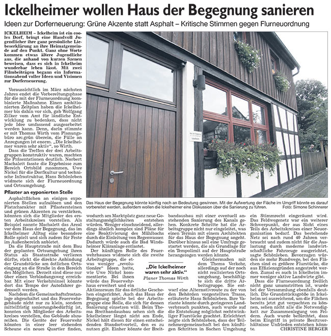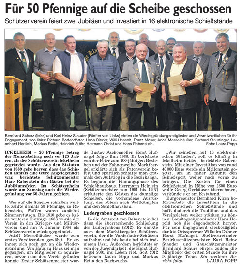 WZ 1. 10. 2014 "Ickelheimer wollen Haus der Begegnung sanieren", "Für 50 Pfennig auf die Scheibe geschossen", "Weiche für schnelles Internet gestellt"