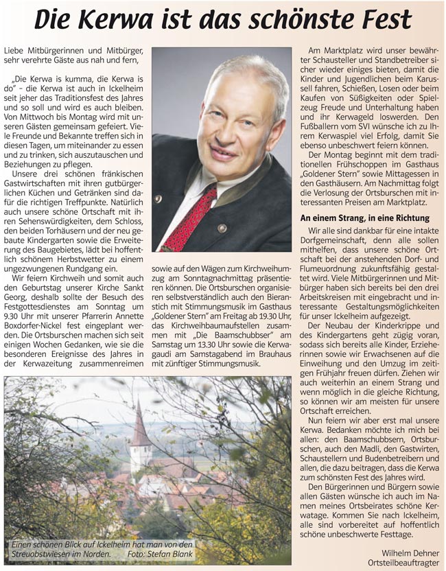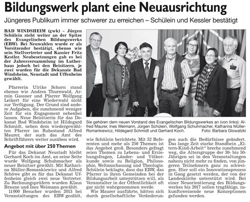 WZ 15. 10. 2014 "Die Delpschule wird erweitert", "Auf den Spuren der Geschichte", "Junge Ärzte an den Landkreis binden", "Mehr als das Museum in Bad Windsheim", "Mit Vollgas in die nächsten vier Jahre", "Die Kerwa ist das schönste Fest"