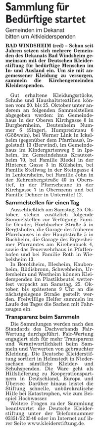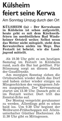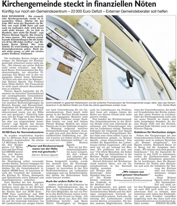 WZ 18. 10. 2014 "Kirchengemeinde steckt in finanziellen Nöten", "Fast schon Marktcharakter", "Wirbelsturm verwüstet Teile von Este", "Sammlung für Bedürftige startet", "Külsheim feiert seine Kerwa"
