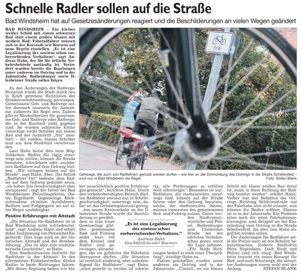 WZ 21. 10. 2014 "Schnelle Radler sollen auf die Straße", "Höhere Gebühren und neue Regeln", "Alle Bürger mit einbeziehen", "Noch bis Dezember gesperrt"