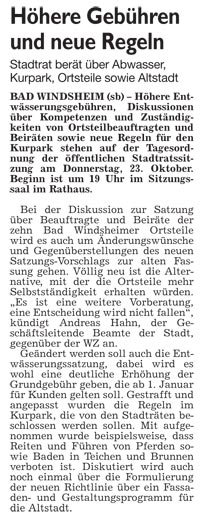 WZ 28. 10. 2014 "Missgeschick auf Mallorca", "Locatores planen Ickelheimer Ortsbild"