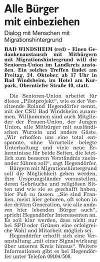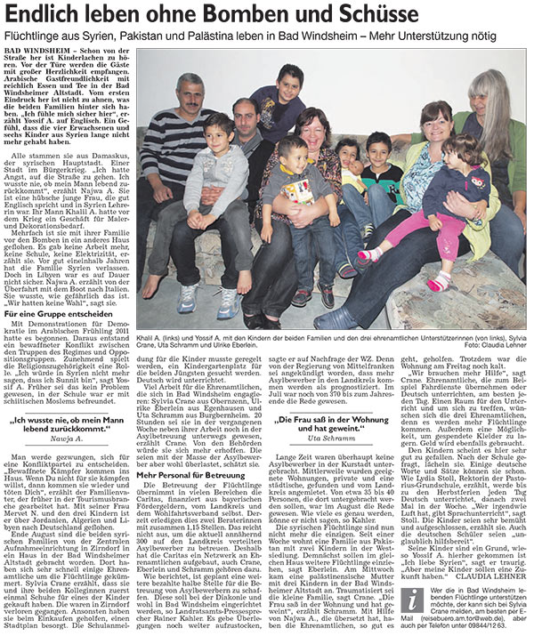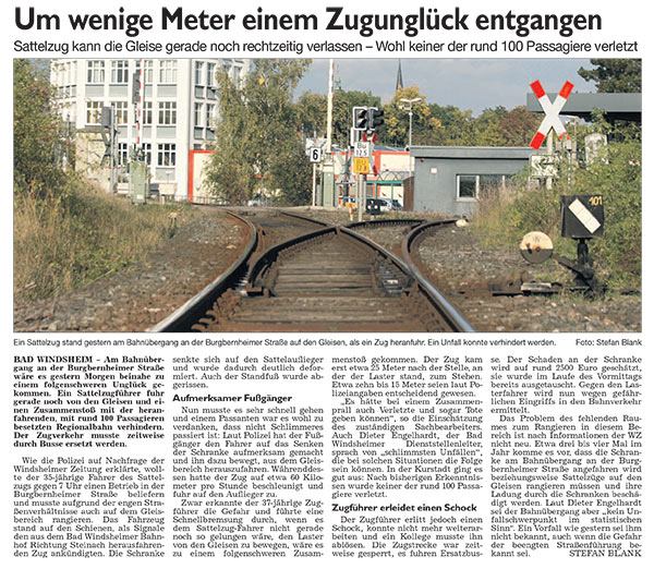WZ 2. 10. 2014 "Um wenige Meter einem Zugunglück entgangen", "Kein Ort für Rechte mehr in Scheinfeld", "Für Engagement und Erfolge geehrt"