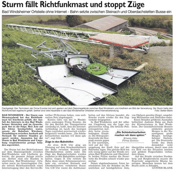 WZ 23. 10. 2014 "Sturm fällt Richtfunkmast und stoppt Züge", "Fundgrube des Wissens wird ausgestellt", "Der Storch fühlt sich wohl im Landkreis", "Vom Bieranstich bis zur Zipelkirwa"