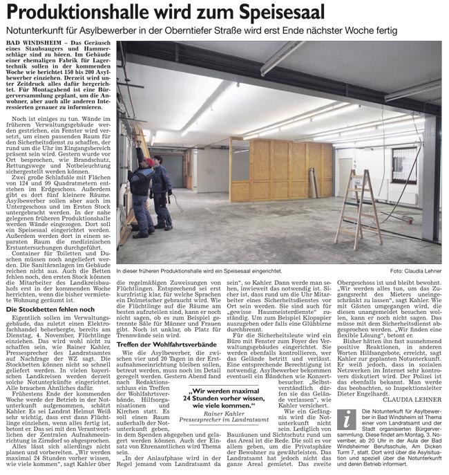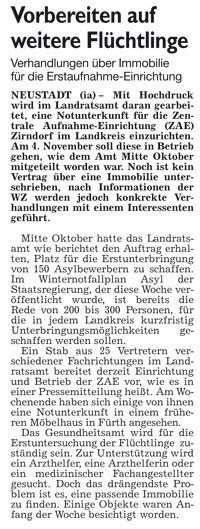 WZ 27. 10. 2014 "Betteln und Baden, Reiten und Radeln sind verpönt", "Notunterkunft in der Oberntiefer Straße", "Bedarf wächst"