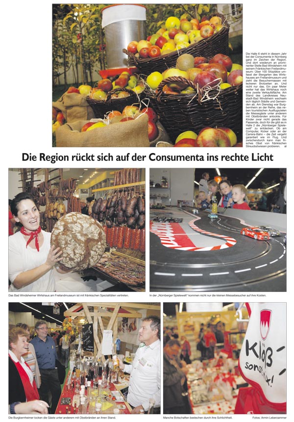 WZ 30. 10. 2014 "Produktionshalle wird zum Speisesaal", "Die Region rückt sich auf der Consumenta ins rechte Licht"