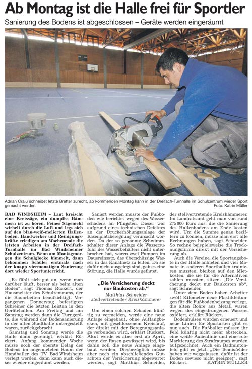 WZ 31. 10. 2014 "Ab Montag ist die Halle frei für Sportler", "Projektsteine für den Schulhausbau", "Der Anfang ist gemacht", "Kindern eine Freude machen", "Die Entscheidung ist erneut vertagt"