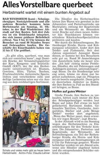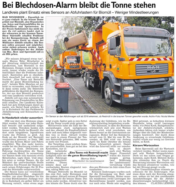 WZ 7. 10. 2014 "Alles Vorstellbare querbeet", "Bei Blechdosen-Alarm bleibt die Tonne stehen", "Frischer Saft trifft auf historische Veredlungstechnik", "Den Zusammenhalt stärken"