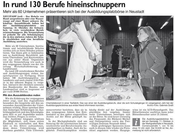 WZ 9. 10. 2014 "Freilandmuseum bleibt Theaterbühne", "Ein neuer Name für ein neues Leben", "Das Pflegen lernen", "In rund 130 Berufe hineinschnuppern", "Bildungswerk plant eine Neuausrichtung"