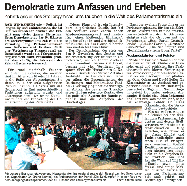 WZ 13.11. 2013 "Demokratie zum Anfassen und Erleben"