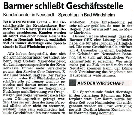 WZ 15.11. 2013 "Liste wird erstellt","Wahl ders Kinder- und Jugendrates", "Barmer schließt Geschäftsstelle"