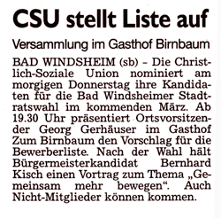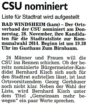 WZ 18.11. 2013 "CSU nominiert"