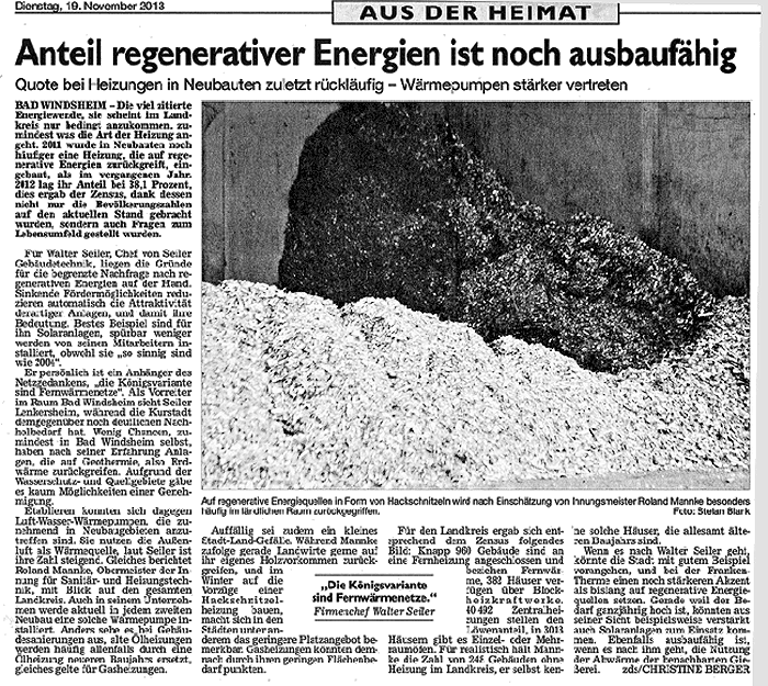 WZ 19.11. 2013 "Anteil regenerativer Energien ist noch ausbaufähig", "Empörung in der SPD", "Kirchweih in der Altstadt
