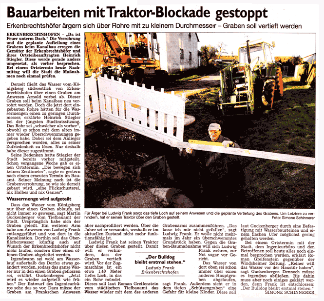 WZ 26. 11. 2013 "Bauarbeiten mit Traktor gestoppt", "Lebhafter Austausch mit Kunden"