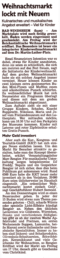 WZ 28. 11. 2013 "Weihnachtsmarkt lockt mit Neuem"