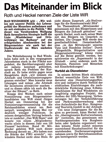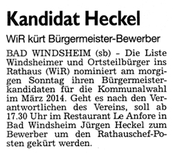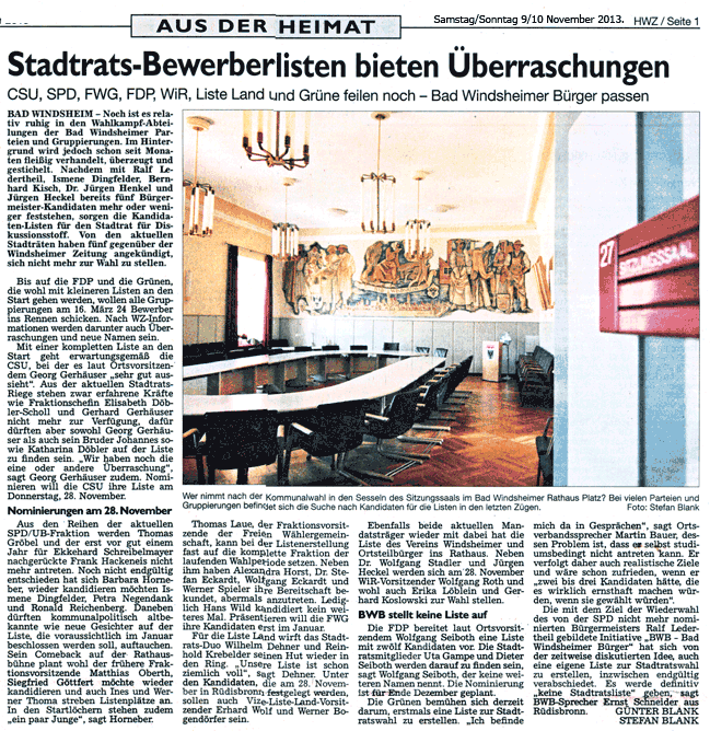 WZ 9/10 11. 2013 "Stadtratbewerberlisten bieten Überaschungen","Heckel kanditiert"