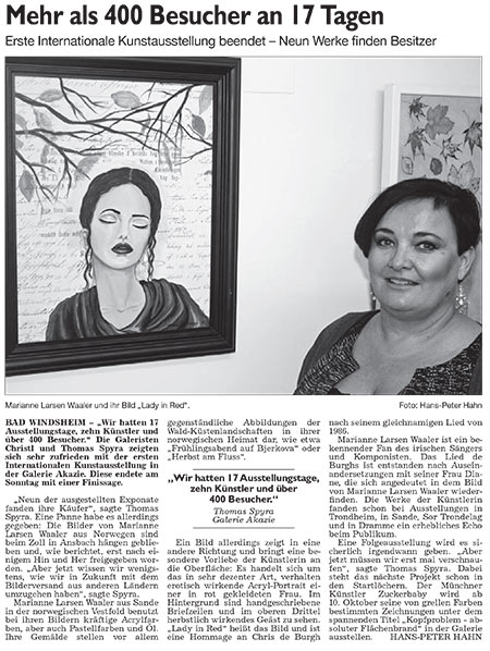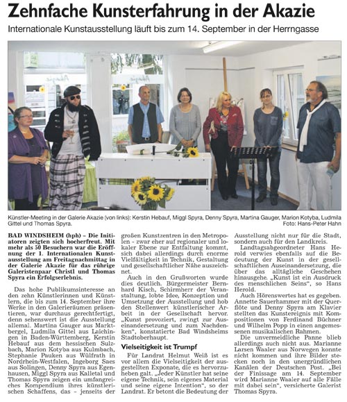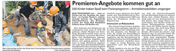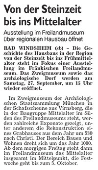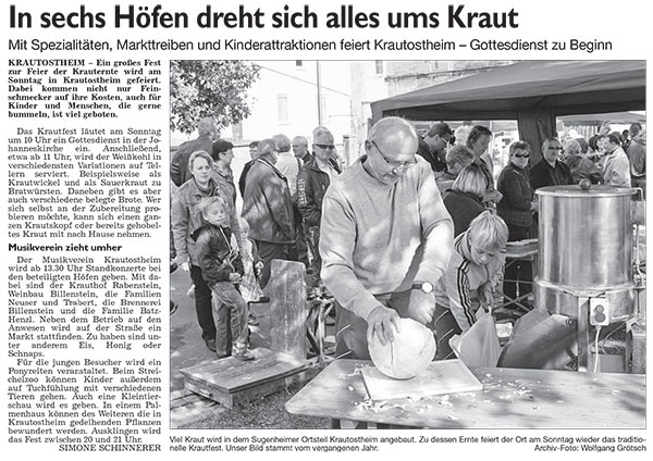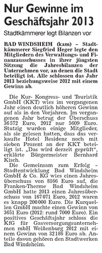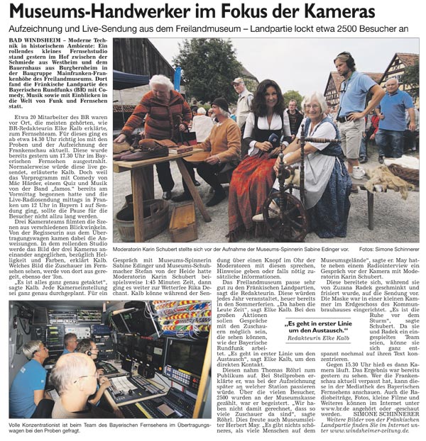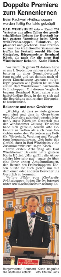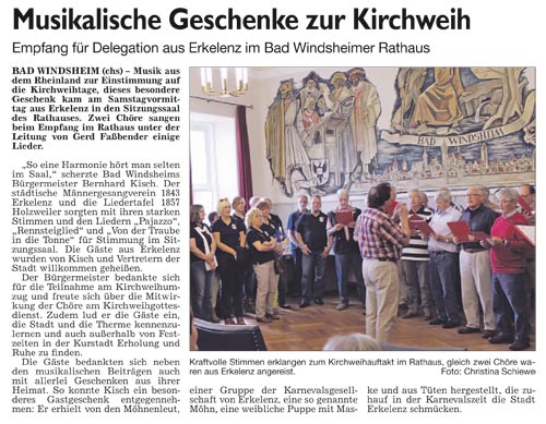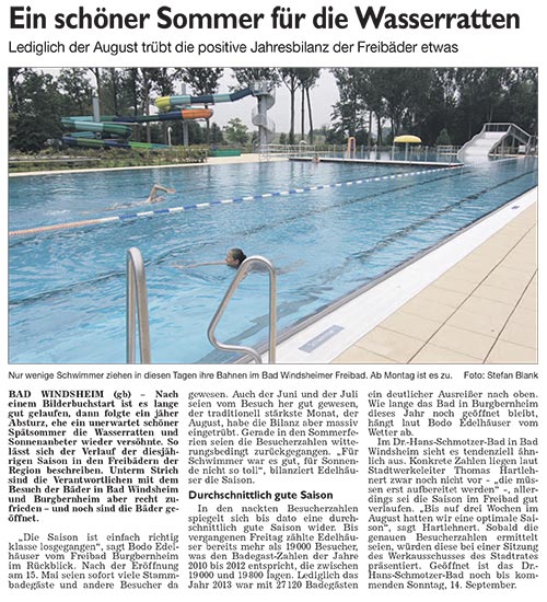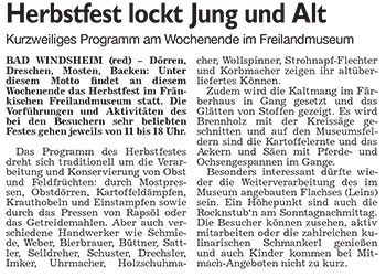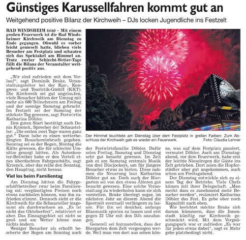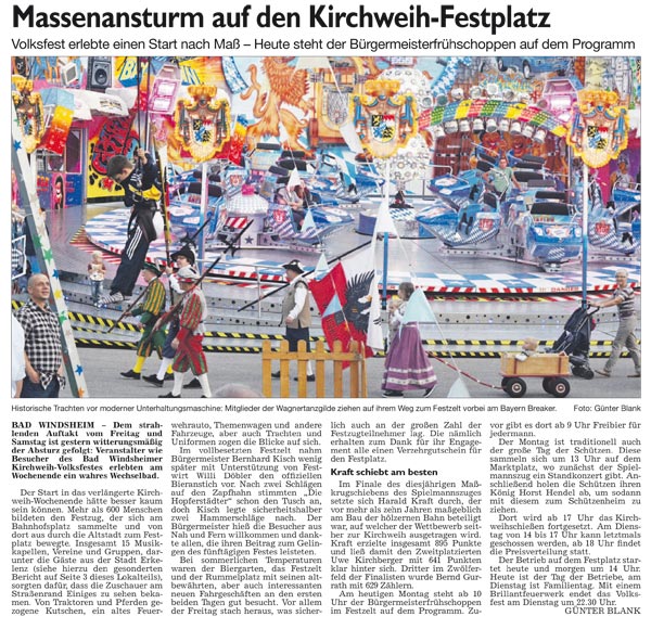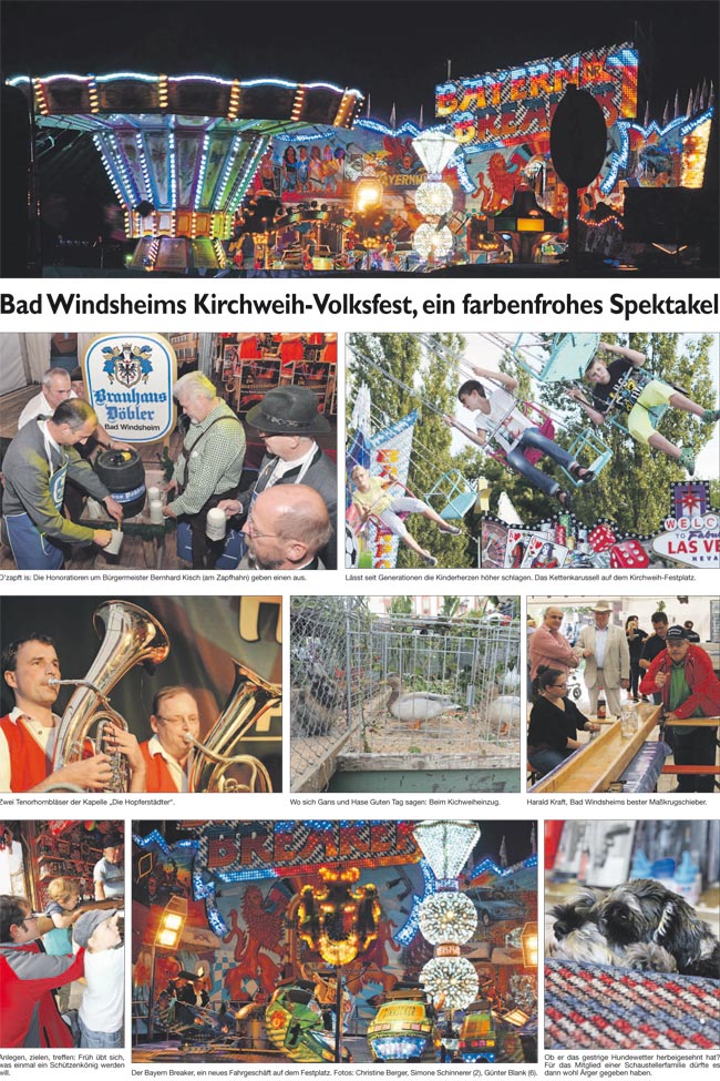 WZ 1. 9. 2014 "Massenansturm auf den Kirchweih-Festplatz","Zehnfache Kunsterfahrung in der Akazie", "Musikalische Geschenke zue Kirchweih","Bad Windsheims Kirchweih-Volksfest, ein farbenfrohes Spektakel"