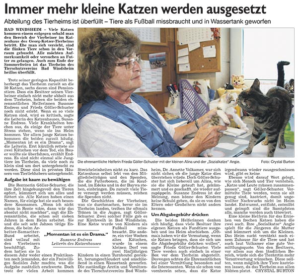 WZ 10. 9. 2014 "Bald an der Brücke vorbei","Herrchen, Hunde und der Häufchen", "Ein schöner Sommer für die Wasserratten", "Immer mehr kleine Katzen werden ausgesesetzt"