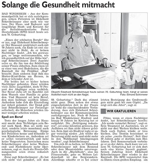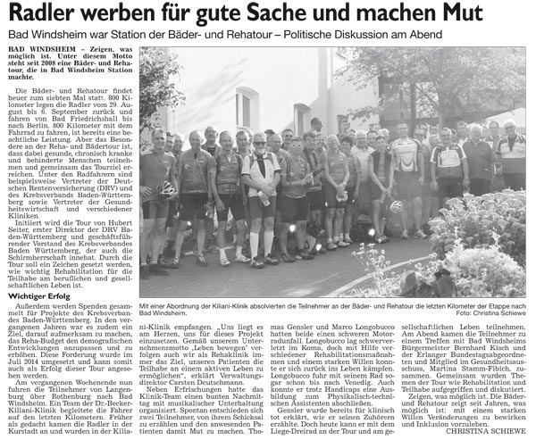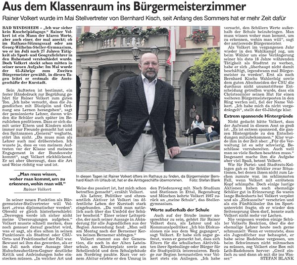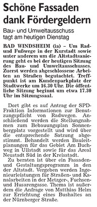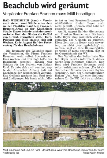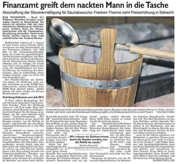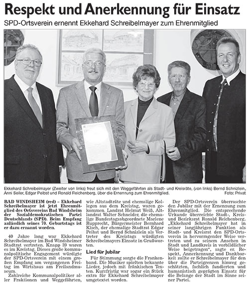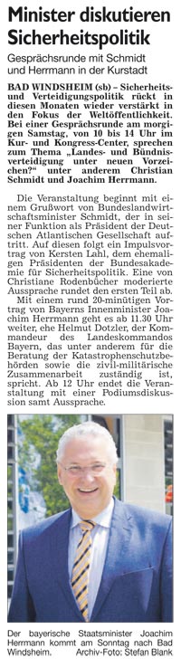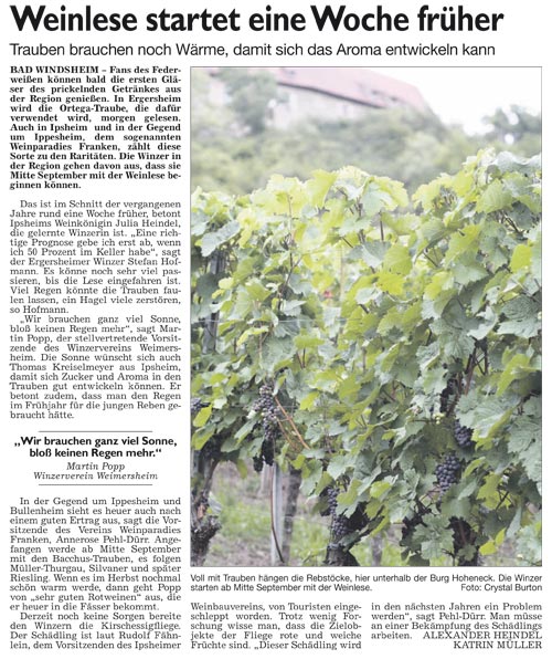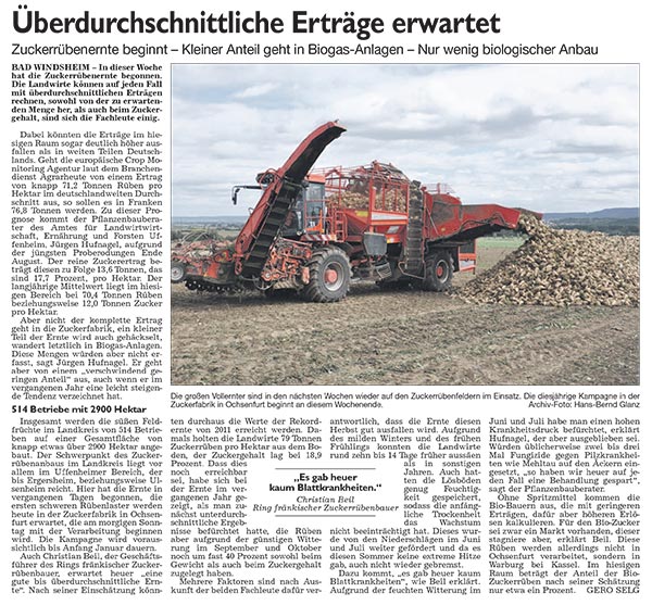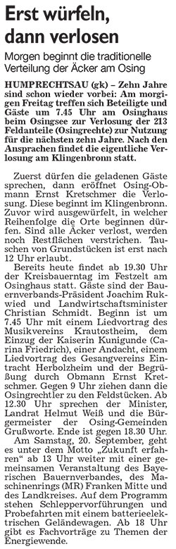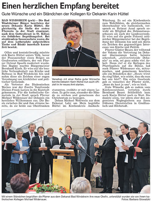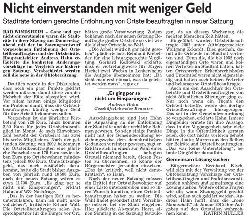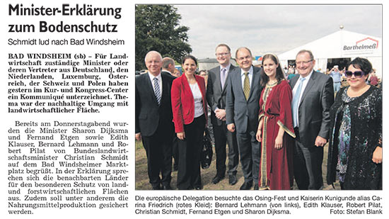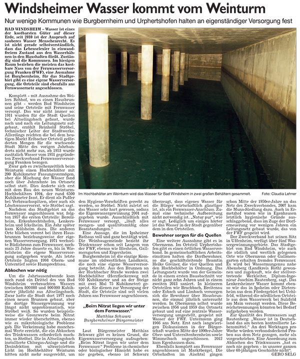 WZ 18. 9. 2014 "Erst würfeln, dann verlosen","Minister zu Gast", "Windsheimer Wasser kommt vom Weinturm", "Respekt und Anerkennung für Einsatz"