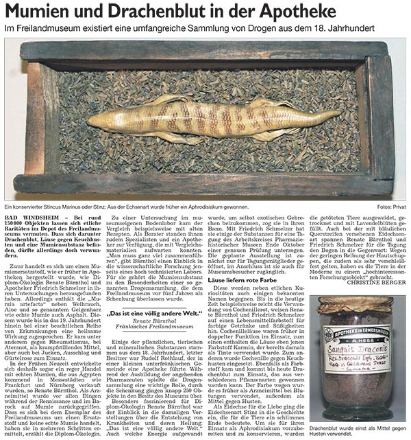 WZ 12. 9. 2014 "Wie ein Vogel oder wie ein Fußballstar","Mumien und Drachenblut in der Apotheke", "Eine alte Dame wird aufgepeppt", "Solange die Gesundheit mitmacht"