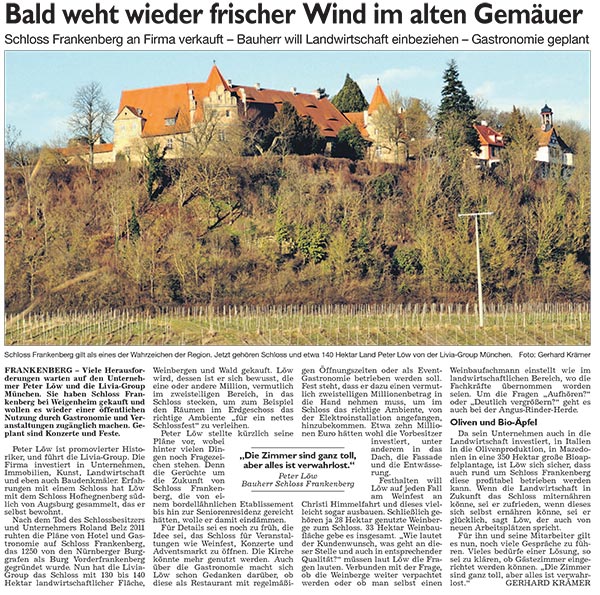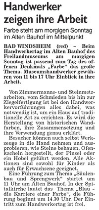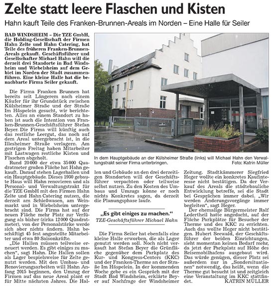WZ 13. 9. 2014 "Handwerker zeigen ihre Arbeit","Bald weht frischer Wind im alten Gemäuer", "Überdurchschnittliche Ertraege erwartet", "Zelte statt leere Flaschen und Kisten"