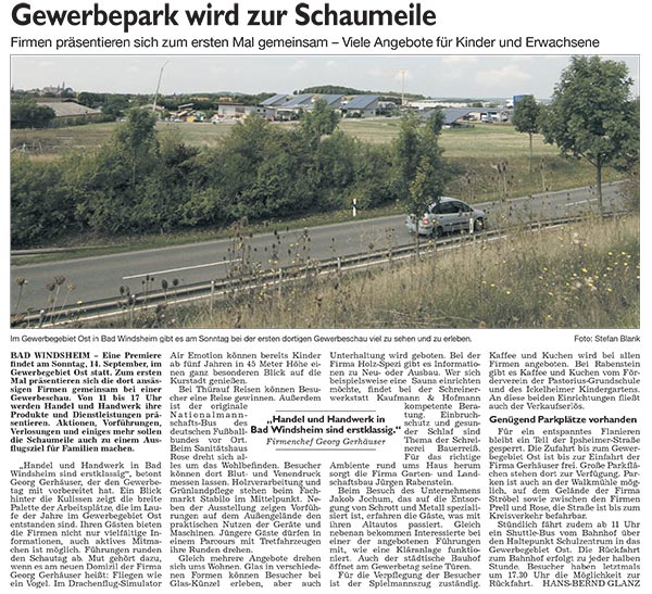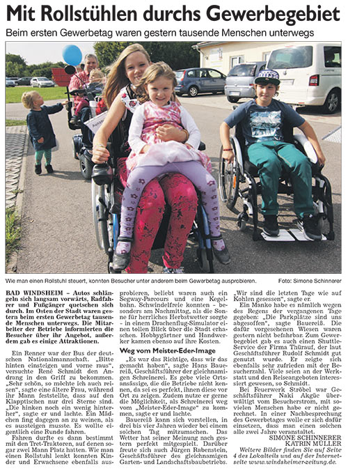 WZ 15. 9. 2014 "Mit Rollstühlen durchs Gewerbegebiet","Von Oratorien bis Trauermusik", "Tausende Besucher strömen durch das Gewerbegebiet"