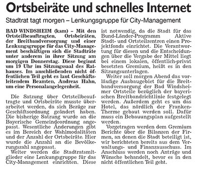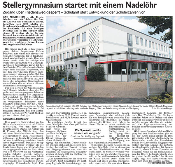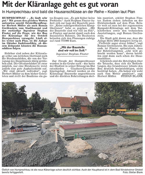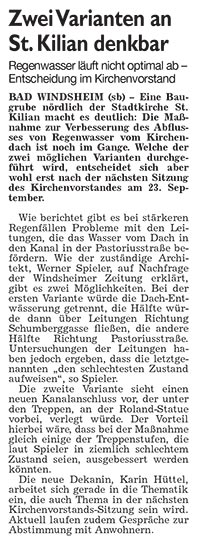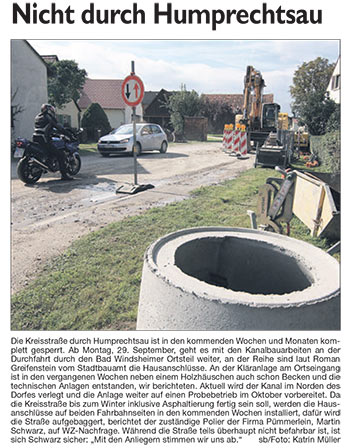 WZ 9. 9. 2014 "Zwei Varianten an St. Kilian denkbar","Mit der Kläranlage geht es gut voran", "Gewerbepark wird zur Schaumeile"