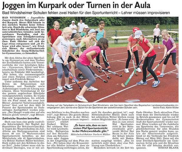 WZ 17. 9. 2014 "Der Baum bleibt die Schrift wandert","Herbstfest lockt Jung und Alt", "Joggen im Kurpark oder Turnen in der Aula"
