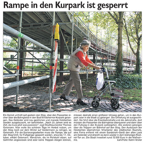 WZ 19. 9. 2014 "Rampe im Kurpark ist gesperrt", "Ackerflächen aus den Händen der Kinder", "Leser sind gefordert"