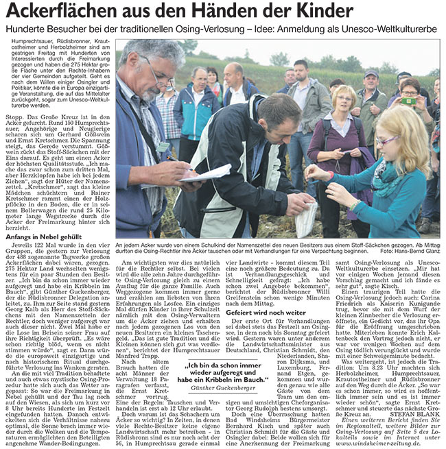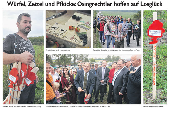 WZ 20. 9. 2014 "Würfel, Zettel und Pflöcke:Osingrechtler hoffen auf Losglück",Teil 1", "Würfel, Zettel und Pflöcke:Osingrechtler hoffen auf Losglück",Teil 2", "Minister-Erklärung zum Bodenschutz", "Landwirtschaft muss sich auch in Zukunft lohnen", "Nur Gewinne im Geschäftsjahr 2013"