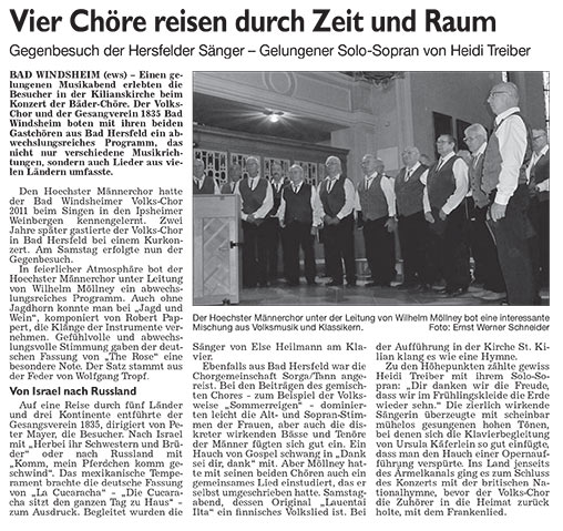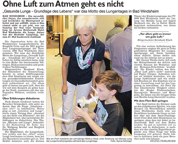 WZ 22. 9. 2014 "Ohne Luft zum Atmen geht es nicht", "Vier Chöre reisen durch Zeit und Raum", "Mit Flieger und Bus zu den Bayern"