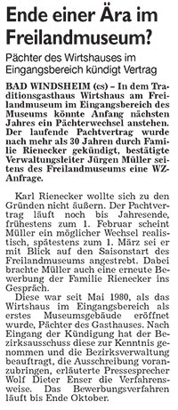WZ 23. 9. 2014 "Kampf gegen den Feinstaub im Kamin", "Ende einer Ära im Freilandmuseum?"