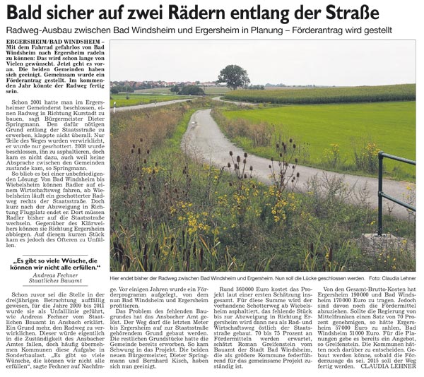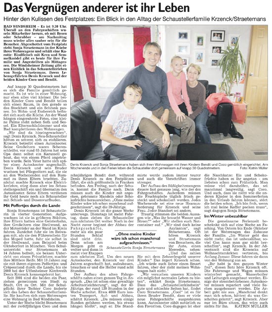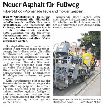 WZ 4. 9. 2014 "Neuer Asphalt für den Fußweg","Zeugnis eines Streits mit tödlichem Ausgang", "Günstiges Karusellfahren kommt gut an","Bald sicher auf zwei Rädern entlang der Straße"