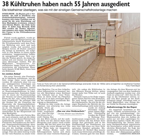 WZ 3. 9. 2014 "38 Kühltruhen haben nach 55 Jahren ausgedient","Livesendungen aus dem Freilandmuseum", "276 Flüchtlinge"