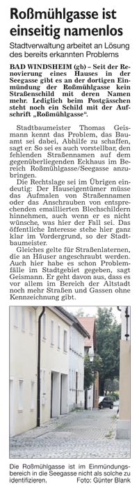 WZ 5. 9. 2014 "Roßmühlgasse ist einseitig namenlos","Bauhofwall ist ab Montag gesperrt", "Beachclub wird geräumt","Minister diskutieren Sicherheitspolitik", "Letzter Handel mit Milchkontingent steht an"