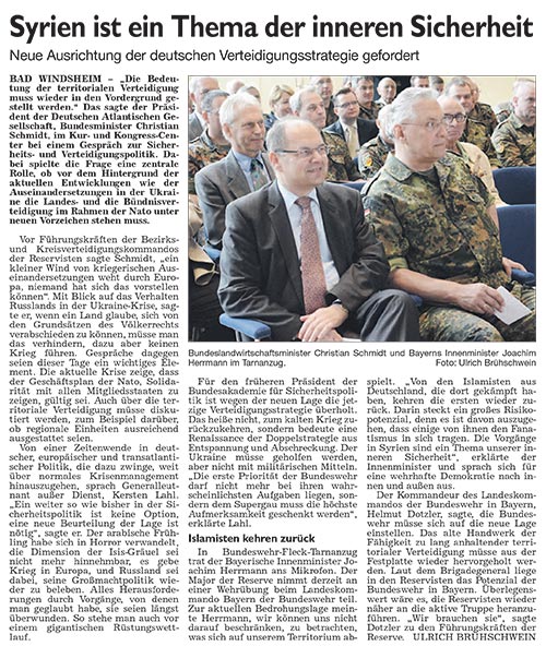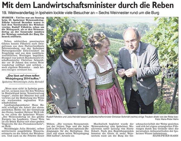 WZ 8. 9. 2014 "Syrien ist Thema der inneren Sicherheit","Mit dem Landwirtschaftsminister durch die Weinberge"